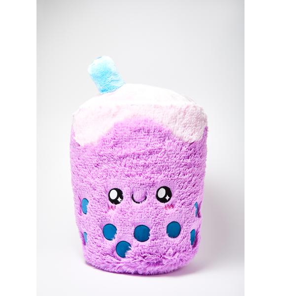 “Yeah, of course. Um, it’s about this big, I think,” he begins, showing a relative size with his hands. “It’s like, uh, shit, what’s it called? Um, fuck. Bubble tea! It’s like a cup of bubble tea, and it’s purple, and it’s got face on one side, and a little blue straw on the top.”