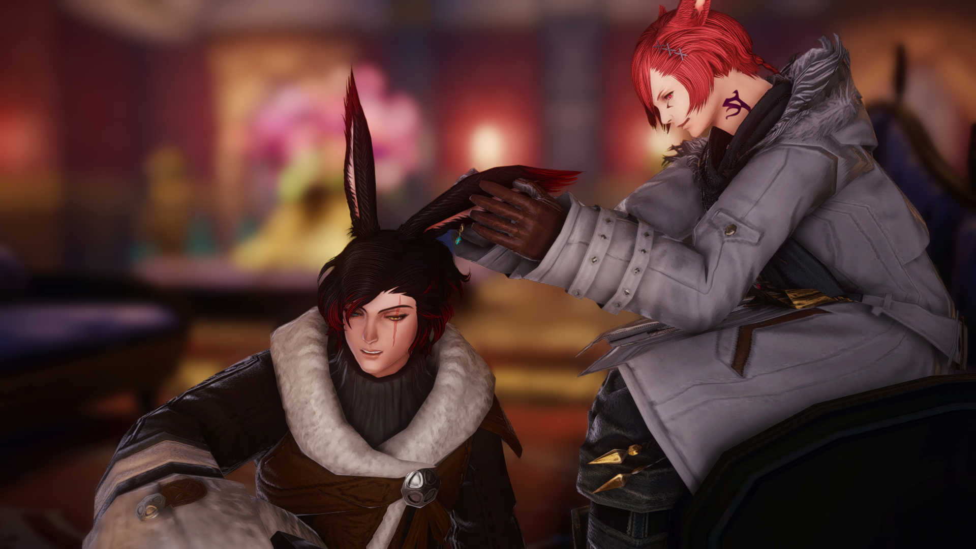 A small sound of amusement vibrating in his chest, G’raha reached out and brushed the tips of his still-gloved hand against one long ear.