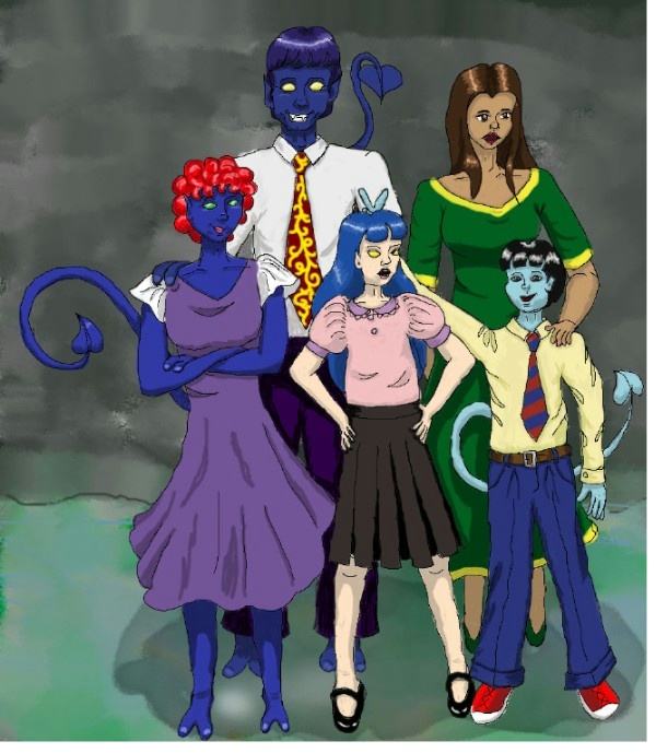 Here's a fun family photo drawn for this story by Kakegoddes, featuring Kurt and Alice and the three kids, Marta, Suzie and Edmund. Thank you so much! :D