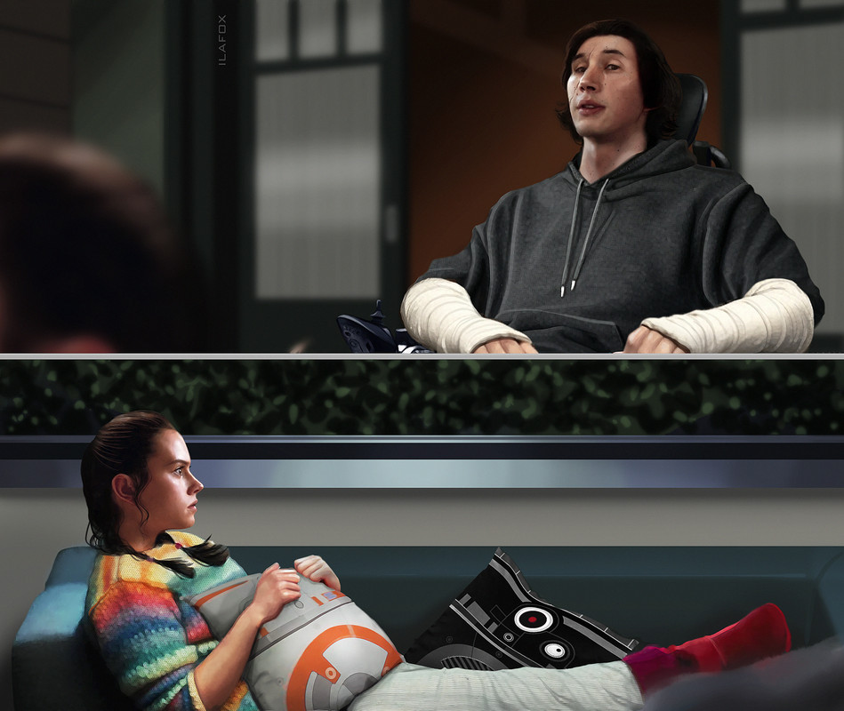 About an hour later, Armitage and Mitaka joined them for the results, standing beside Ben closest to the window while Rey remained seated on the chair.