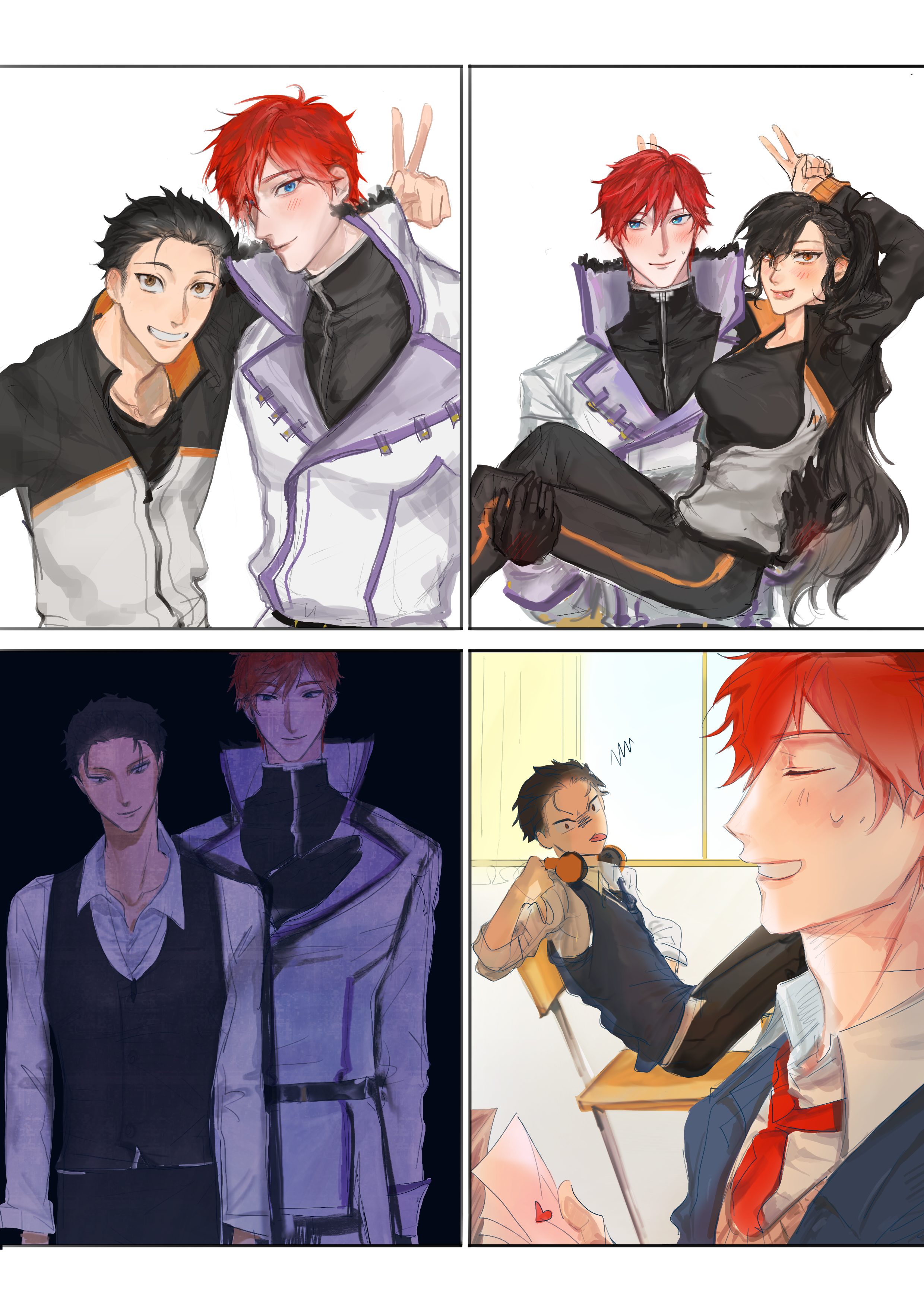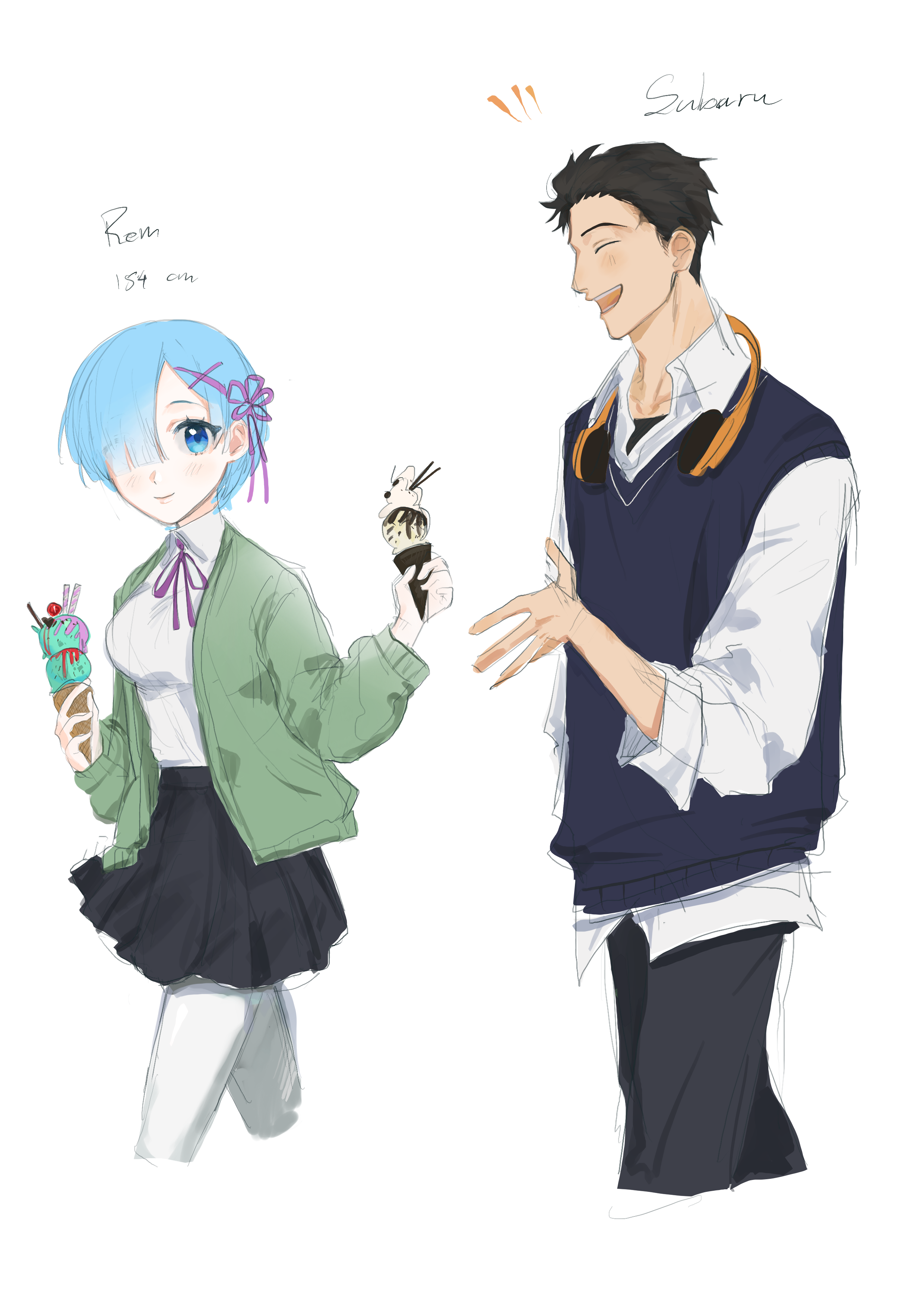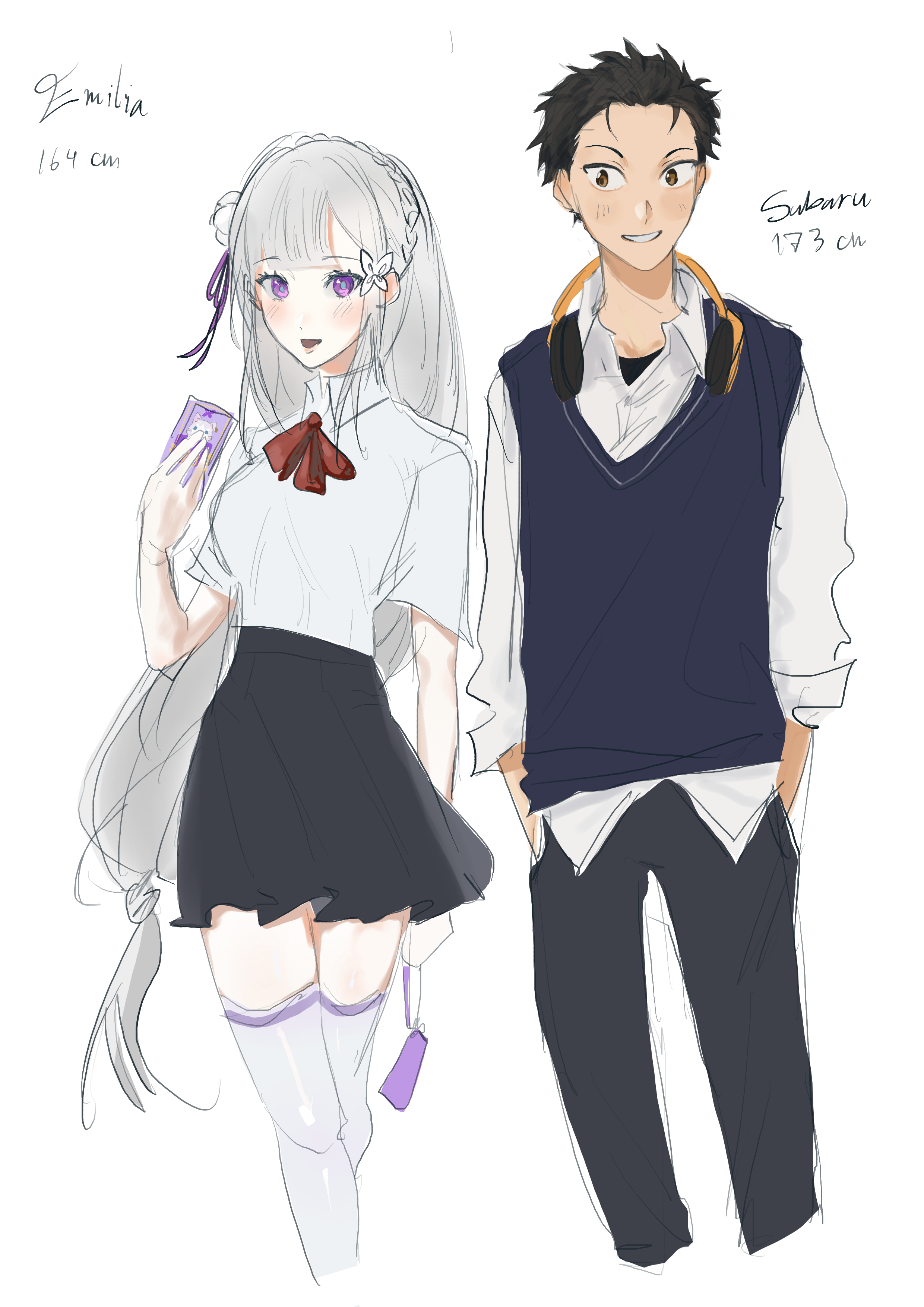 I don’t think I’ve ever mentioned this AU before — it takes place in a timeline where Subaru arrives earlier than in canon, becoming an inventor and even writing a few popular novels. He travels with Otto and ends up developing a good relationship with Anastasia (who is fascinated by his abilities). Although he helps Emilia and even likes her, he chooses to remain neutral. After the royal selection ends with Emilia’s victory, Subaru eventually marries Anastasia.