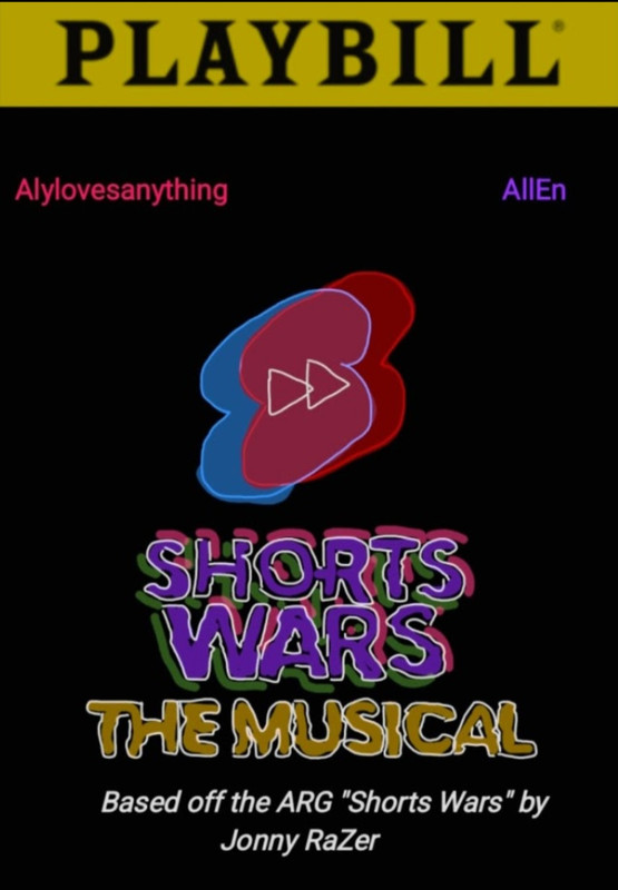 It all started on April Fools day a few years ago, when Switch ig decided it would be funny to post a video called "Shorts Wars the Musical". And boy did I fall for it. Not only did I feel like an idiot, but I was mad. Mad that Switch wasted such a beautiful idea for a stupid prank that would be taken down from his channel later on. So I took matters into my own hands. It started as a joke, gathering songs, casting my friends... until I met my Co-director, @Vyanalyi, aka Allen. The musical then went through a series of mishaps, with the state of it constantly being in jeopardy. First I wanted to write it with original music, then Allen offered to help so I made him my co-writer as well, then I got anxiety about posting it so I gave up, then I got angry at Switch so I started writing it out of spite as a jukebox, then I almost canceled it again because I chose to leave the community, I let go of all the people I casted, I got angry at the fact that I've worked too hard to let this go to waste so I decided to save it, basically, this musical has been through A LOT. It has always been my dream to contribute something beautiful to a fandom that cherished me, so this is it. If you could, please give this as much love as possible. I want to be known as "the Shorts Wars the Musical girl". AndmaybegetrecognizedbyRumblePack- What? Who said that? Anyway, we ask that you please, sit back, relax, and enjoy, Shorts Wars the Musical. Presented by Alylovesanything and AllEn, sponsored by Deztheartist, raiineee, Alex B, NPC, HoloDetective, joy.drxftss, Owentalks, and MysticalChaos.