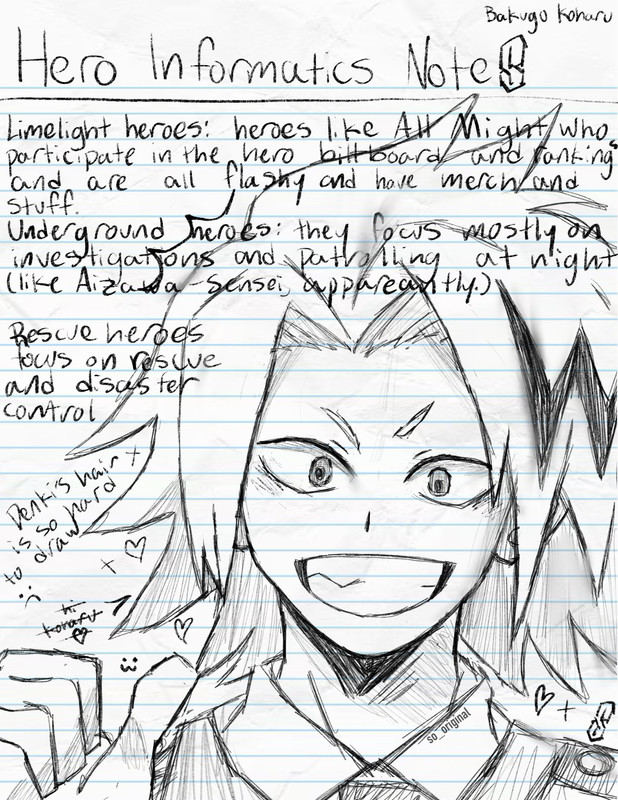 And then, here’s a really goofy drawing I decided to do randomly of one of Koharu’s notebook pages, with a drawing she did of Denki on it lol. (I guess this would be after she realizes her crush) (♡ˊ͈ ꒳ ˋ͈)