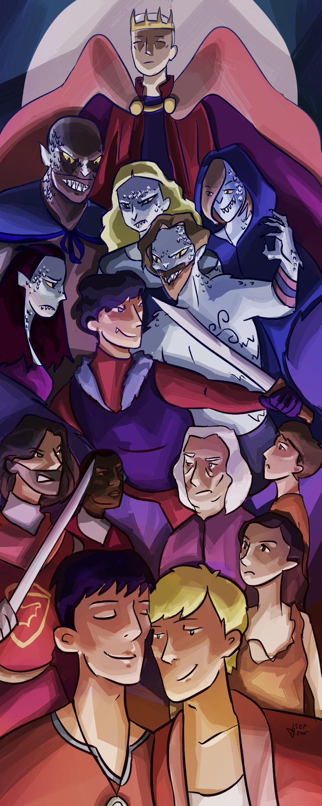 “Well,” he said brightly, clearing his throat, “I believe this is my cue to leave.” He wove his way among the knights until he reached Tarald. Looking him up and down, Mordred smiled.